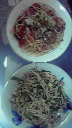 パスタは胃でふくらむので後からきますね。けっさんは食べても太らなそう~